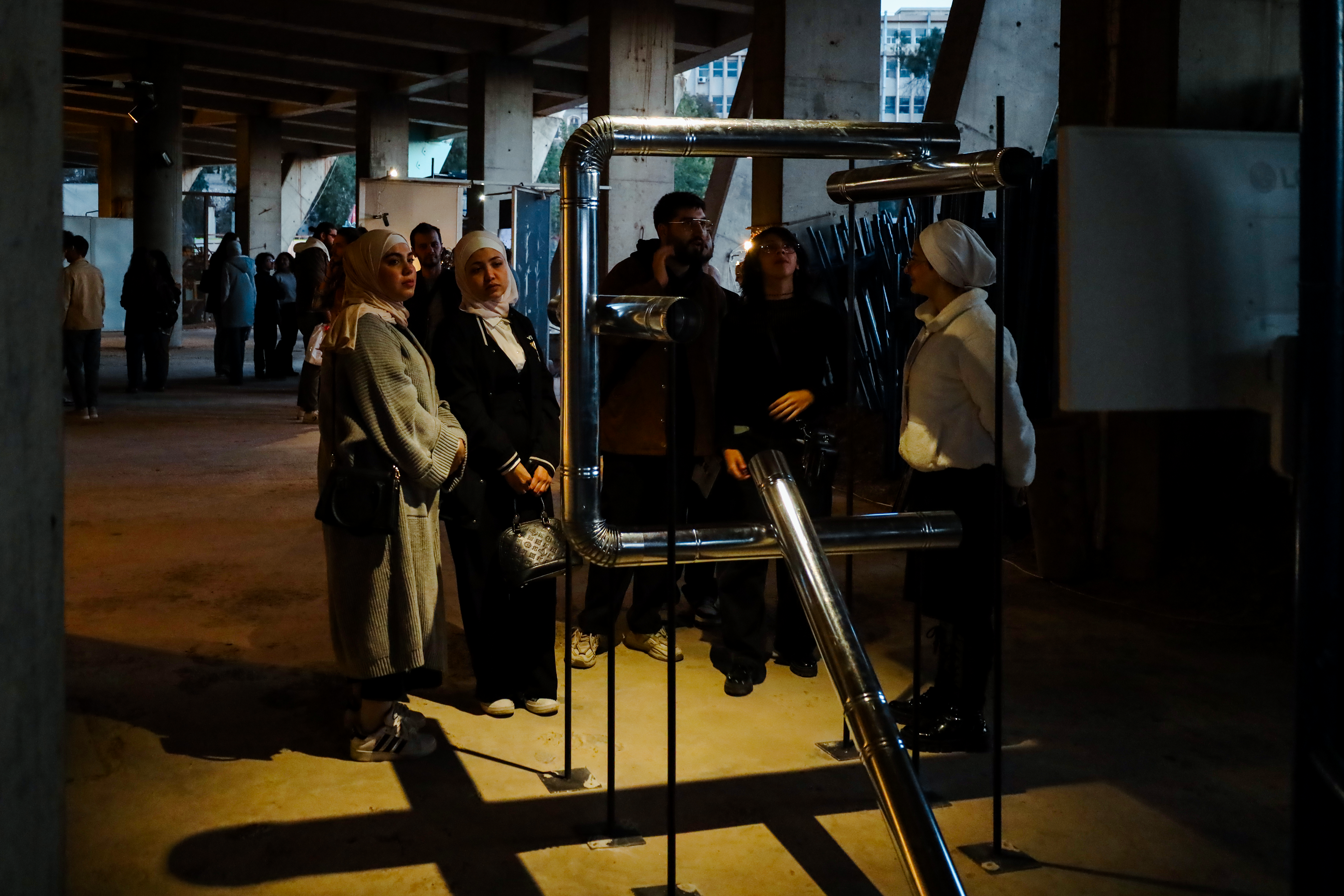 Six stove pipes rise like bones. Cold. Hollow. Echoing.